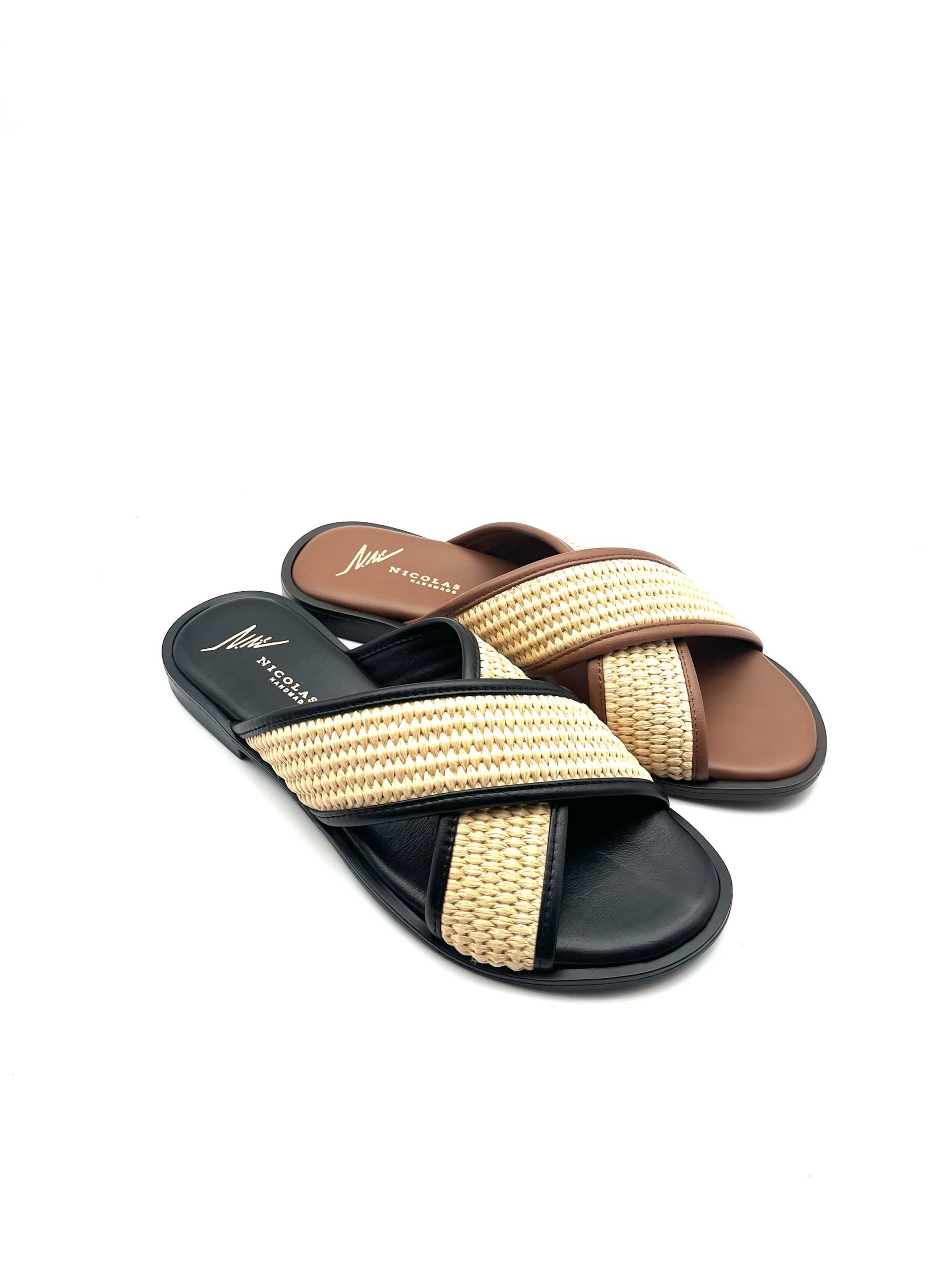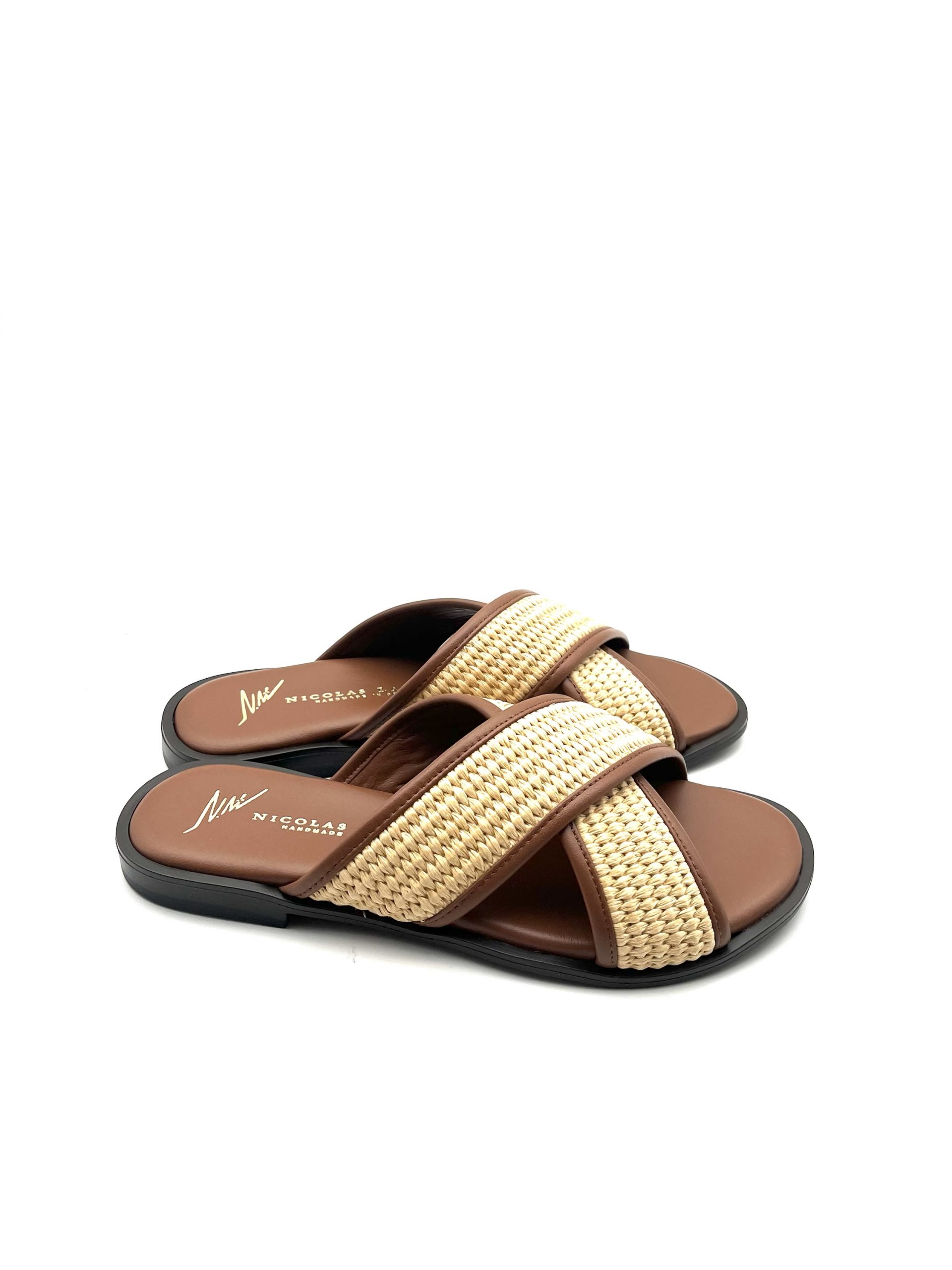 Lederschlappe mit Korbgeflecht